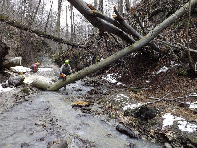 A március 15-i viharos szélben a Rám-szakadékba dőlt fák ledarabolása megtörtént, a jeges szakaszok leolvadtak, a Rám-szakadékban futó turistaút újra járható.